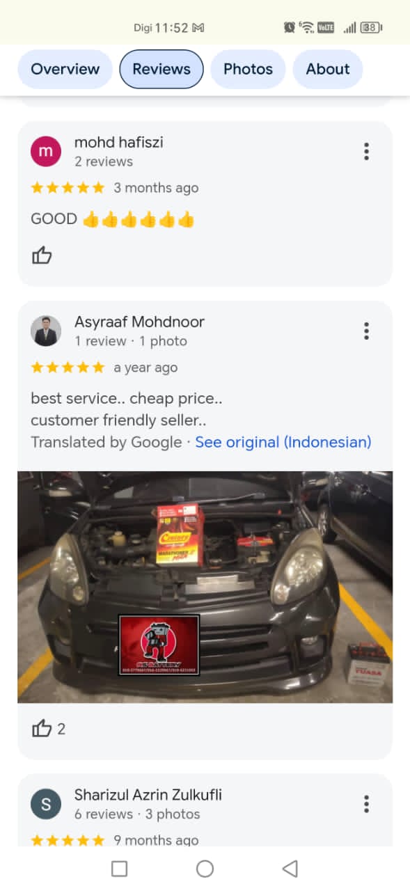 Kami hanya menggunakan bateri berkualiti dari jenama dipercayai, lengkap dengan jaminan produk untuk memastikan prestasi kenderaan anda kekal terbaik.